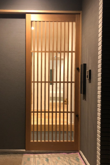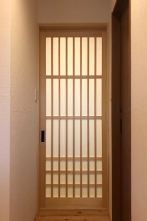 建具とは、部屋や外部との仕切りに用いる戸や障子、襖、窓などの総称で、どれも開け閉めができるという特長があります。材質は大きく二つに分かれ、木質系、金属系があり、井野元建具では木質系の建具「木製建具」を作っています。木製建具の良さは、なんといっても木のぬくもりを感じられること。老若男女を問わず、癒しと格調の恩恵を受けることができます。一級技能士の資格をもった職人が責任を持って設計・施工を行い、建てつけが悪くなった時などのアフターフォローも万全です。